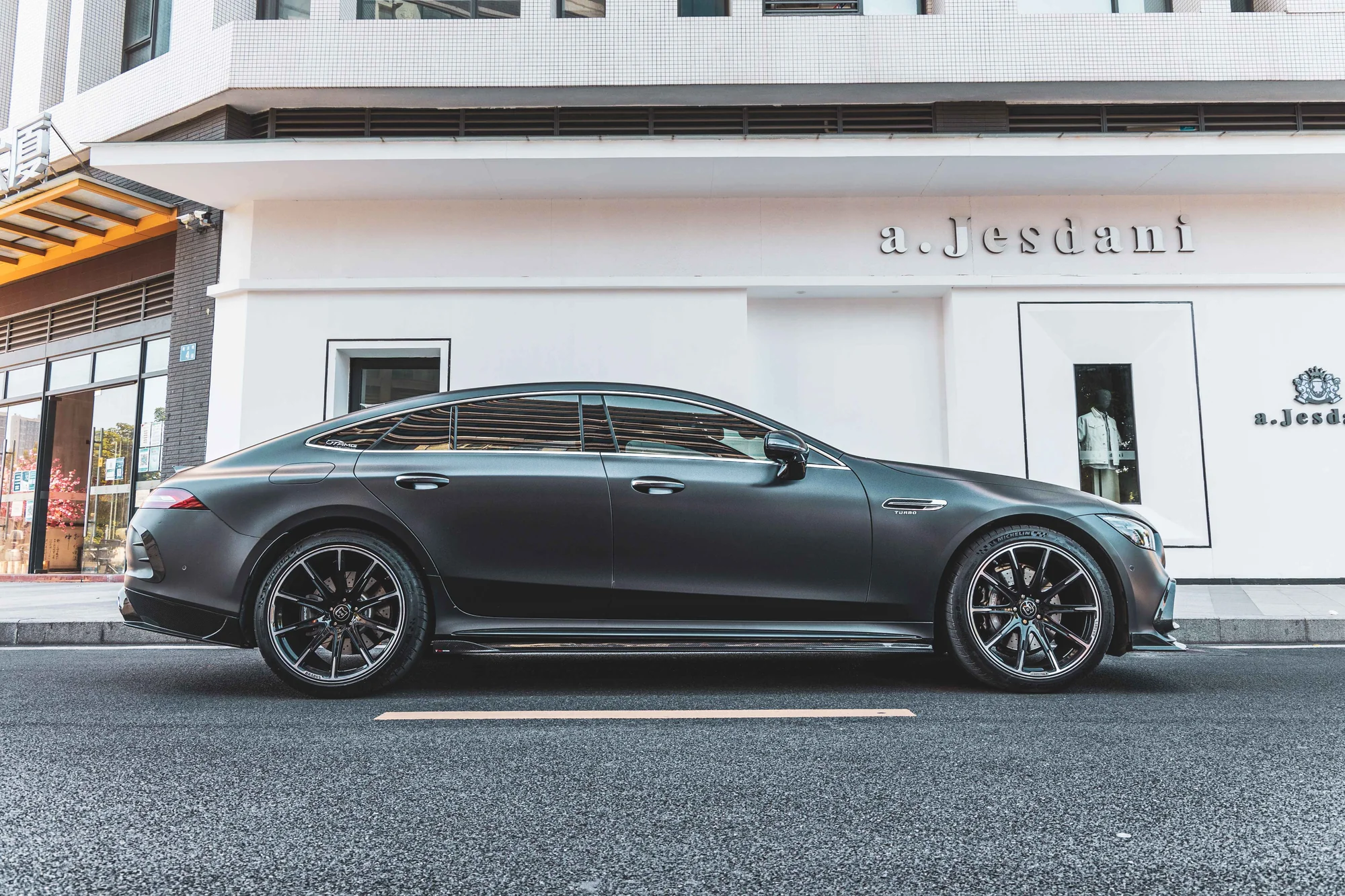 Technologia Dry Carbon zapewnia wyjątkową sztywność przy minimalnej masie, a wykończenie o wysokim połysku podkreśla prestiżowy wygląd w stylu AMG Performance.