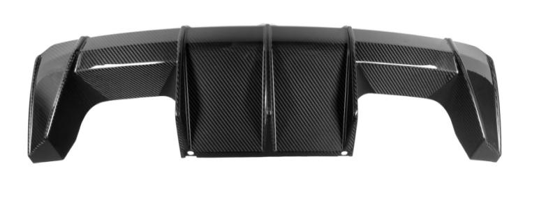 Dyfuzor tylny karbonowy do BMW M3/M4 G80 G82 to wysokiej jakości element aerodynamiczny, który podkreśla sportowy charakter pojazdu. Wykonany w 100% z prawdziwego włókna węglowego w połysku, idealnie dopasowany do linii nadwozia BMW serii G.