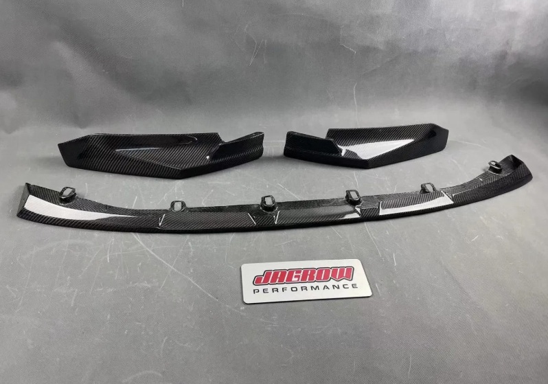 Splitter przedniego zderzaka do BMW M3/M4 G80 G82 S58 wykonany z wysokiej jakości 100% włókna węglowego w technologii „dry carbon”. Element zapewnia nie tylko wyjątkową wytrzymałość i odporność na warunki atmosferyczne, ale również nadaje agresywny i sportowy wygląd przedniej części pojazdu.