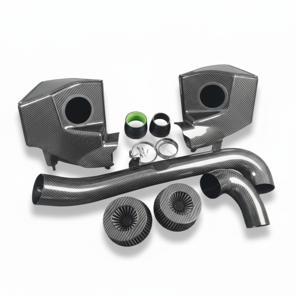 Ekskluzywny zestaw dolotu powietrza wykonany z dry carbonu (suchego włókna węglowego), zapewniający maksymalną wydajność i sportowy wygląd komory silnika. Dzięki zastosowaniu technologii dry carbon całość jest wyjątkowo lekka, wytrzymała i odporna na wysokie temperatury, a jednocześnie nadaje wnętrzu silnika prestiżowy charakter rodem z motorsportu.