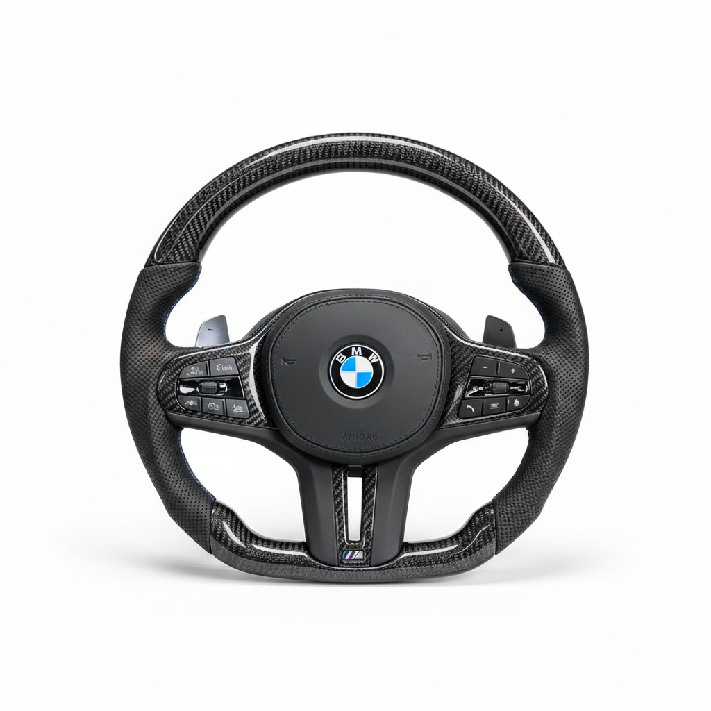Kierownica sportowa BMW (G-seria + F70) – włókno węglowe / skóra, łopatki M